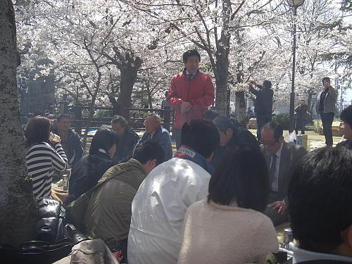 日頃、自主的に勉強会を開催している「司法書士自主研修会」の皆さんと、若手司法書士の皆さんにより発足した「愛媛県青年司法書士協議会」の皆さんとの合同お花見に参加。ざっくばらんに様々な意見を交わす。