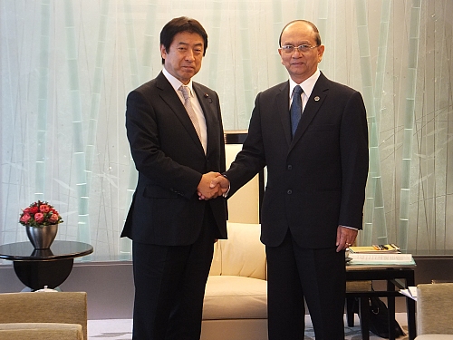 安倍元総理、遠藤利明議員らとともに来日しているミャンマーのテイン・セイン大統領を表敬。大統領とは今年1月「アジアの子どもたちに学校をつくる議員の会」で渡航以来の再会となった。民主化の流れを引き続き支援していくとともに経済、人的、文化交流など意見交換。