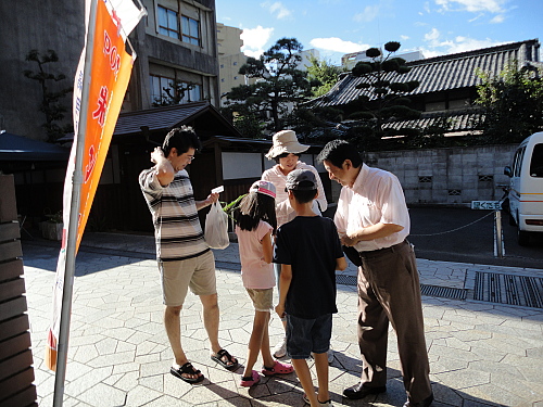 道後湯上り朝市のおじゃまする。買い物に来ている子ども連れの家族と談笑。子どもたちに元気を頂いた。