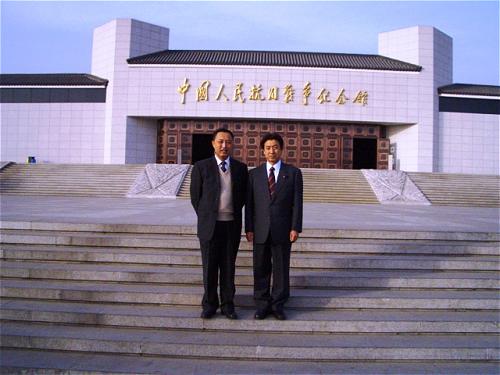 廬溝橋にある中国人民抗日戦争記念館前にて、館長さんと立つ。