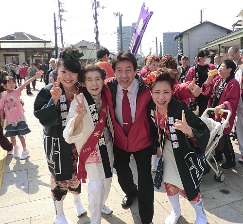 道後温泉まつりイベントの女みこしかきくらべパレードにおじゃまする。