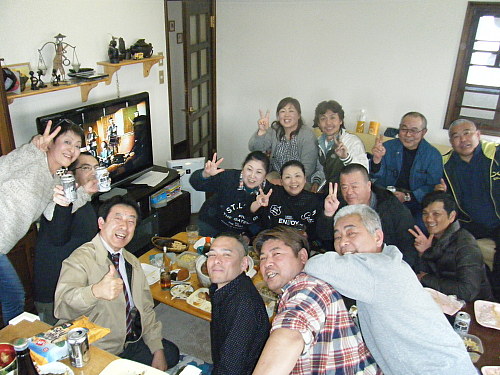 お花見の予定だったが、雨天のため急遽友人の自宅での開催。