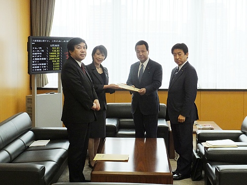 甘利明・経済再生担当大臣に、私が本部長代行を務める自民党・日本経済再生本部が取りまとめた「日本再生ビジョン」を手渡し、日本経済再生に向けた不断の取組みを申し入れる。政府が6月末にかけて改訂予定の「日本再興戦略」の中に、私達の提言の多くが採用されることを期待。