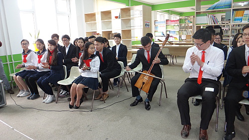 新モンゴル高校の男子生徒が心をこめて馬頭琴を奏で、歓迎の意を表してくれる。