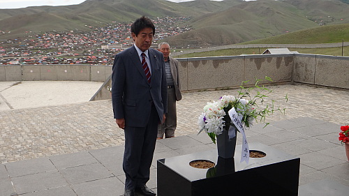 日本人慰霊塔に頭を垂れる 【ウランバートル郊外、モンゴル】