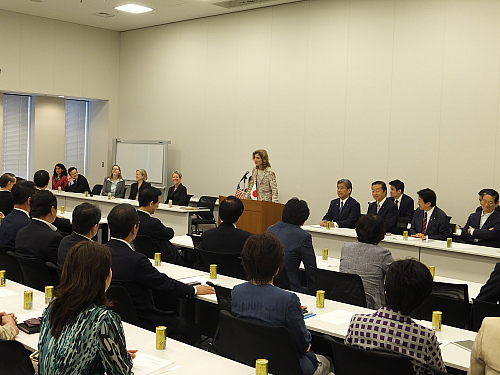 公務多忙の中、キャロライン・ケネディ駐日特命全権大使をお迎えし日米国会議員連盟総会を開催。国会議員と代理秘書合わせて200名をゆうに超える出席者で会場があふれる。日米同盟を更に強固なものとするために議連としての活動も活発化していきたい。