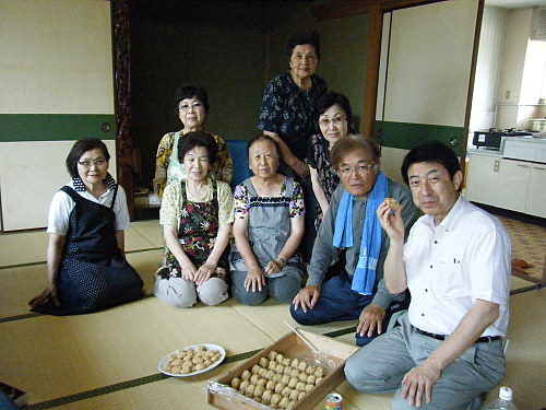あいにく準備中だったが、出来立ての炊き込みご飯のおにぎり、自家製奈良漬、きなこ餅をごちそうになる。とても美味しく、さらに皆様の笑顔に元気を頂く。