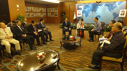 昨年まで駐日インドネシア大使を務めておられたルトフィ商業大臣を商業省に訪ね、幅広く意見交換。日本の農産物の受け入れ増大、観光客の相互訪問拡大のためのビサ要件緩和、等々、在京大使としての豊富な経験と知識にあふれる大臣との対話だけに、たくさんのアイディアが双方から出る。