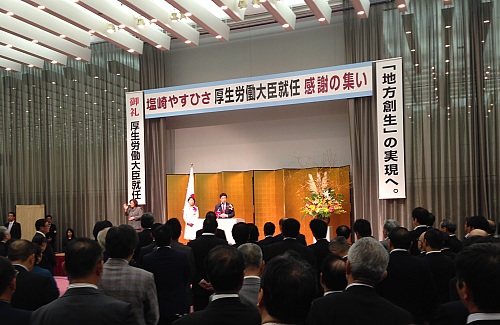 地元松山で「塩崎やすひさ厚生労働大臣就任感謝の集い」を開催。これまでどんなときも支えて下さった皆様、温かく叱り育ててくださった大勢の皆様を目の前にして、地元のありがたみを実感するとともに、元気と勇気を頂戴する。国民の皆様の生命と暮らしを守るため、山積する課題に全力で取り組む決意を新たにしました。