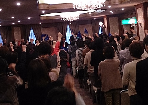 たかがい恵美子参議院議員に駆けつけていただき、大勢の皆様から激励を受ける。看護の現場で奮闘して頂いている皆さまの声もしっかり踏まえ、医療等を改革して参ります。