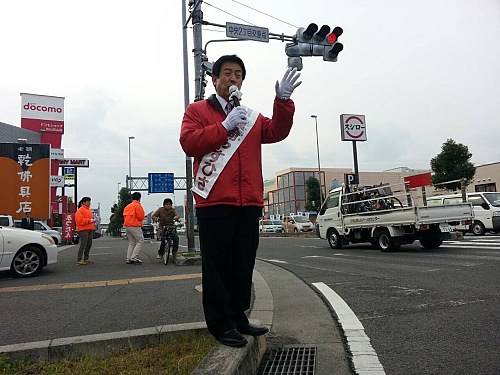 衣山交差点で街頭演説を行いました。未来への責任をしっかりと果たします。
