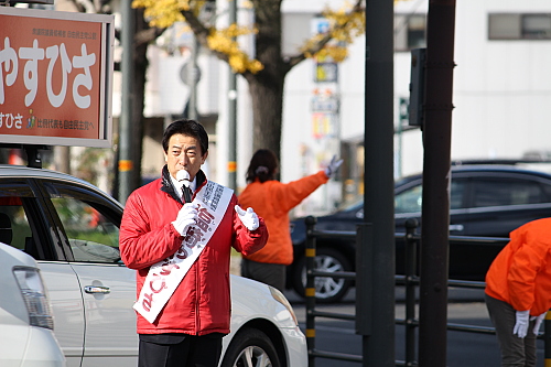 道後喜多町交差点で街頭演説を行いました。景気回復の暖かな風を皆さまにお届けして参ります。
