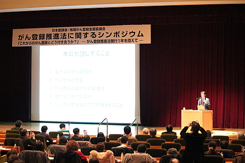 日本医師会が主催する「これからのがん登録とどう付き合うか?」をテーマとしたがん登録推進法に関するシンポジウムで講演。