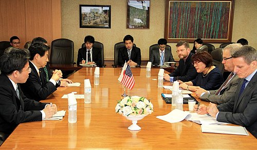 来日中の米国経済協議会のジョン・レックライター会長と面会する。健康への投資や医薬品医療機器に係るイノベーションについて意見交換。