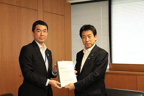 宮城県の村井嘉浩知事より、被災地の復旧・復興事業への財政措置、雇用創出事業、被災者健康支援事業等についての要請を受ける。