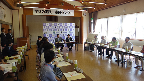 亀井利克名張市長を中心に、「名張版ネウボラ」の実施拠点である「まちの保健室」、名賀医師会長、サロンきずな等々、地域運営の中核となっている皆さんと意見交換を行う。昨年4月に4期目に入った亀井市長は、市長就任当初から一貫して、地域の高齢者を含む住民参加・住民運営の街づくりのインフラを構築、強化する事に注力して来られ、今、その上に高齢者健康づくり・介護予防、子育て支援、地域づくりなどが、住民参加の下で花開いているようだ。「保健医療2035」提言の「モデルシティー」には、こういう街が対象となるのか。