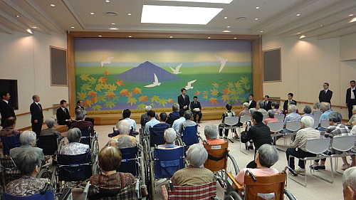 平均年齢87歳の高齢被爆者に対し、介護職員の95%が介護福祉士の資格者という、レベルの高い、温かい介護・看護を提供する広島原爆養護ホーム「倉掛のぞみ園」を宇都外務大臣政務官、地元河井克行代議士とともに慰問。被爆体験の次世代への継承は重要ながら、その「語り部」も高齢化により少なくなる一方。広島原爆養護ホームでは本年4月、被爆体験記「紙碑」の第七集を編んだが、「これが最後となるのではと危惧している」との蒲田理事長の言は重たかった。