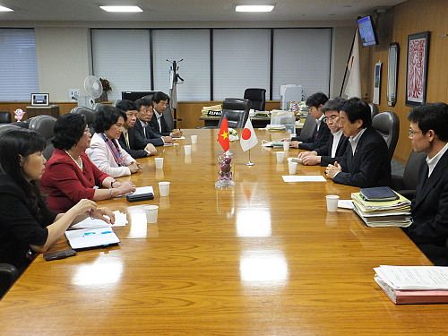 明日28日(金)より日本政府主催により開催される「女性が輝く社会に向けた国際シンポジウム(WAW!2015)」に参加するため、ベトナムから来日中のグエン・ティ・キム・ガン国会副議長とファム・ティ・ハイ・チェエン労働・傷病兵・社会問題大臣が厚労大臣室に表敬に来られる。高齢者施策や保健分野での知見共有、技能実習生の受け入れ促進等、両国の協力関係を発展させるべく活発な意見交換を行う。