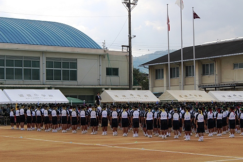 息の合った行進に、力強い宣誓と精悍な顔つきの中学生を見て頼もしく思う。