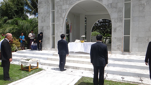 ヤンゴン日本人会が管理をしてくださり、全ビルマ会のご協力も頂く、日本政府建立の「ビルマ平和記念碑」に献花、拝礼し、御霊の安寧を祈る。