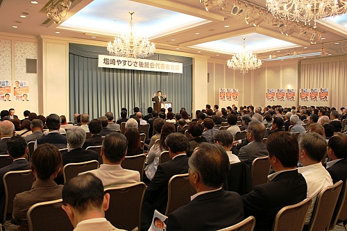今夏、3度目の参議院議員選挙に臨む山本順三副大臣をお招きし、「塩崎やすひさ後援会代表者会議」を開催。