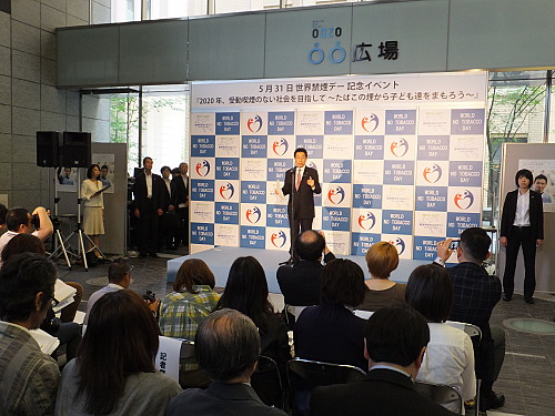 WHOが定める世界禁煙デー(5月30日)に合わせて、東京・丸の内で開催した啓発イベントで挨拶。たばこが健康に与える悪影響を認識し、2020年東京オリンピック開催までに受動喫煙のない社会を実現して参りたい。