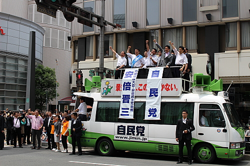 安倍総理、山本順三副大臣とともに、これからの我が国には何が必要か、大いに熱弁をふるう。