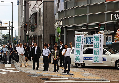 愛媛が選ぶのは、たったひとり。山本順三候補を再度国政に送り出すべく、全力の訴えが市内に響く。