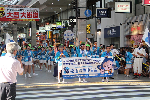 地元松山の夏祭り「松山まつり」に参加し、「青色申告会」の皆さんと野球拳おどりで盛り上がりました。