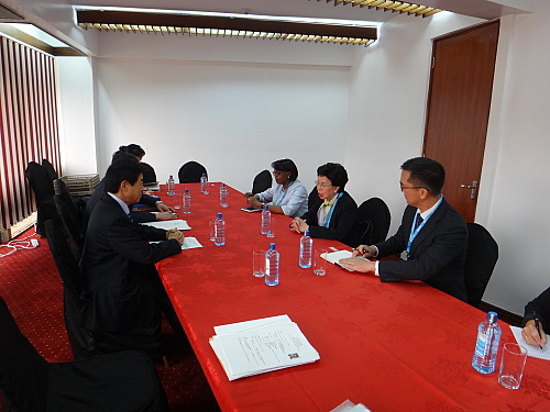 世界保健機関(WHO)のマーガレット・チャン事務局長と、アフリカにおける感染症危機克服、保健システム強化のため、UHC達成が何よりも大事であり、そのことこそがアフリカ諸国の平和と安定、そして経済成長への近道であることで意見が一致。9月11・12日のG7神戸保健大臣会合での再会を約束。