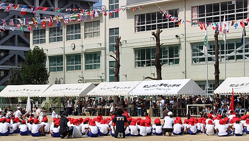 私の父が卒業生であり、塩崎事務所にごく近い、松山市内ど真ん中の伝統ある番町小学校は、今年が創立130 周年。人口・子供数減少によって、10年ほど前は一学年一クラス編成も困難化、以来運動会は公民館と共同開催。また校区外からの通学も可能としたところ、今や、半数以上が校区外からながら、350 人規模の学校にまで復活。創立130 周年を記念する今年の運動会、晴天に恵まれた良き日に、小学生と地域住民、そして校区外の保護者、おじいちゃん、おばあちゃんなどが一体となって活き活きとした一日を過ごす。