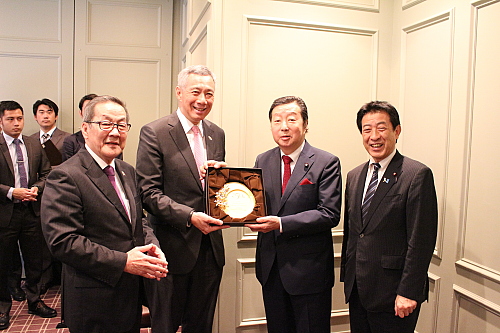 故リー・クァンユー元首相に対する桐花大綬章を受領するため来日された、シンガポール共和国 リー・シェンロン首相と面会し、日本・シンガポール友好促進議員連盟会長として、同議連会員とともに意見交換を行う。冒頭、長年同議連の会長をお務めになった小坂憲次先生に対し、リー首相より感謝の盾が授与され記念撮影。