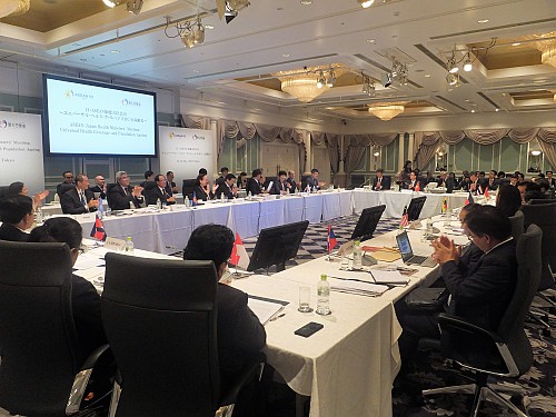 日ASEAN保健大臣会合では、持続可能なUHCの達成、コミュニティにおける包括ケアの推進、について議論する。その後、日ASEAN保健大臣会合共同宣言を採択。