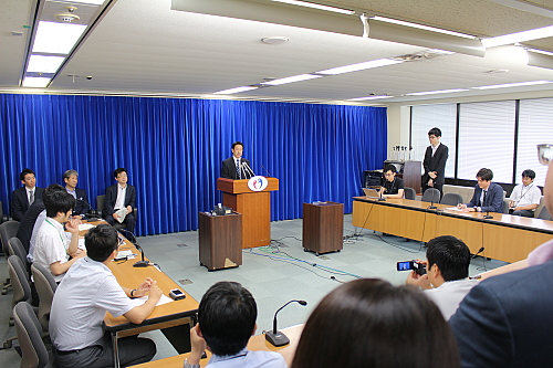 厚生労働大臣に就任してから約3年間、定例の記者会見を行ってきた会見場で退任挨拶を行う。