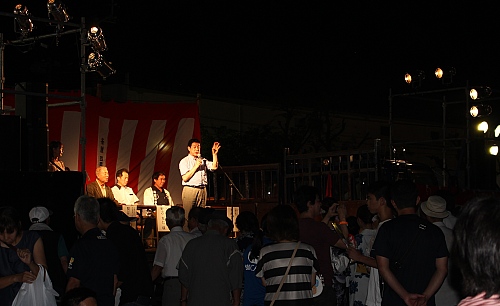 恒例の松山港まつり花火大会の開会セレモニーに出席する。