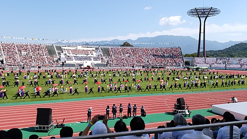 両陛下をお迎えして、開会式前の県民参加創作プログラム。坊っちゃんとマドンナ。