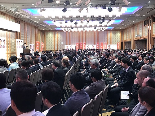 松山の経済を担う皆様に、人、教育、産業への攻めの投資、生産性向上等により日本経済再生を成し遂げることをお誓いしました。