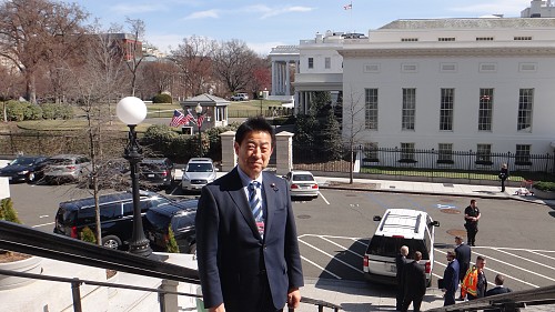 ジマーNSC上級部長との面会後、快晴のホワイトハウスをバックに、ワンショット。