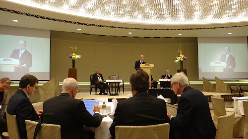 北米、欧州、アジア太平洋州の三極を代表する識者の伝統ある会議体である三極委員会の2018年総会が、3日間の予定でシンガポール・フラトンホテルで始まる。アジア太平洋州を代表して、長谷川閑史・武田薬品工業相談役が冒頭の挨拶。