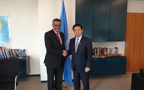 昨年12月の東京に引き続き、スイス・ジュネーブのWHO本部に、テドロス事務局長を訪ねる。本年9月の国連結核ハイレベル会合、来年の日本でのG20、TICADVII、そして日本が主導して開催が決まった国連UHCハイレベル会合、さらには2020年の日本での栄養サミットなど、わが国がリードすべき国際会議にも関連し、テドロス事務局長の最優先課題でもあるUHC実現に向けての協調のあり方を語り合う。
