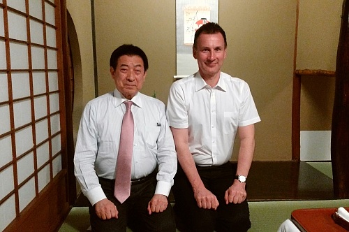 3年前のベルリンでのG7保健大臣会合以来、密に意見交換を行ってきた英国ハント保健大臣と、京都市内で合流の上、楽しきひととき。