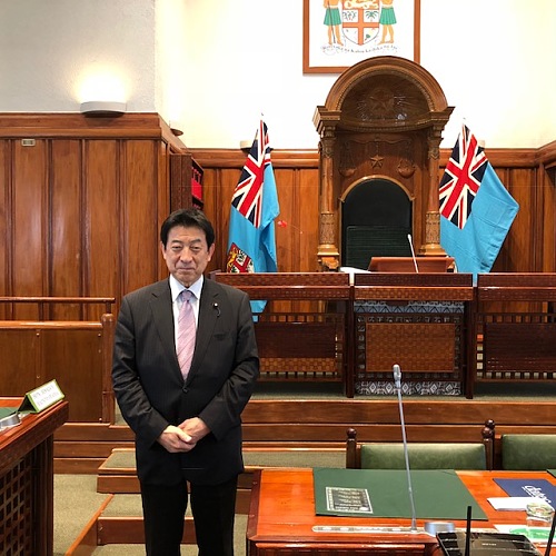 インドから贈呈を受けた背景の議長席、威厳ある座席。