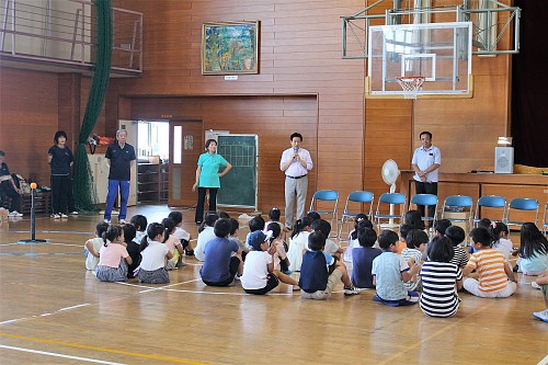 地域の子ども球技大会に出席。大勢の子どもたちから元気をいただく。