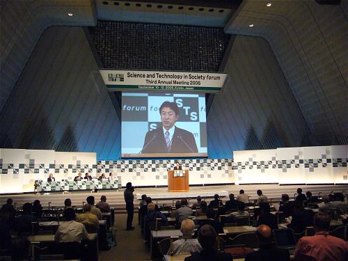 尾身幸次元科学技術担当相のイニシアティブで始まった Science and Technology in Society Frum の第3回会合(京都国際会議場)の「政治リーダーと科学者の対話」とのテーマの全体セッションでスピーチを行う。