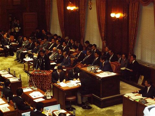 安倍内閣の全閣僚が揃う中、民主党 菅代表代行からの質問に対して答弁する安倍首相。(私は安倍首相の後方の席)