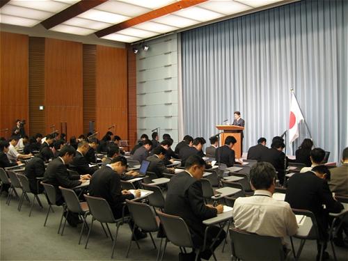 今年初の定例記者会見。米軍普天間飛行場の移設問題などの質問が出る。