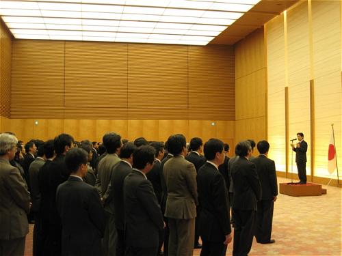 内閣官房の職員の方々を前に年頭の挨拶を行う。