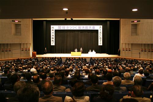 県連定期大会後、関谷勝嗣先生の必勝を期して総決起大会が行われる。党員・党友、友好団体、国会議員・県議・市議の後援会など約3000名が集まり、経験と実績ある関谷先生の参議院選挙必勝を誓う。