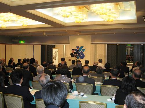 全青色特別講演会「安倍内閣の目指すもの・当面する重要政策課題について」と題し、安倍政権が取り組んでいる中小企業の生産性、収益力向上の対応策や今や国際的課題となっている環境問題。そして年金問題への社会保険庁の廃止、解体、6分割をはじめとする政府の取り組みについて語る。