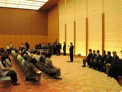 与党PT提出の新たな中国残留孤児支援策決定を受け、全国から残留孤児の代表約80名が首相官邸を訪れ総理と面会。総理からの労いの言葉に、涙を拭う孤児の皆さんのこれまでの苦労に思いを馳せ、早急かつ確実な支援実施の誓いを新たにする。